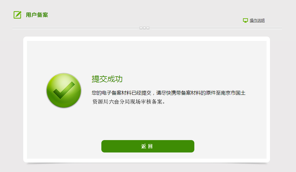 (2)备案成功,请尽快携带备案材料的原件至南京市规划和自然资源局六合分局现场审核备案。