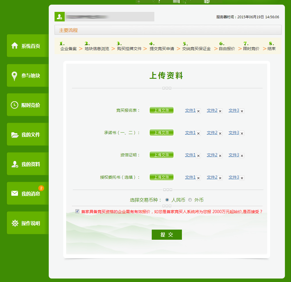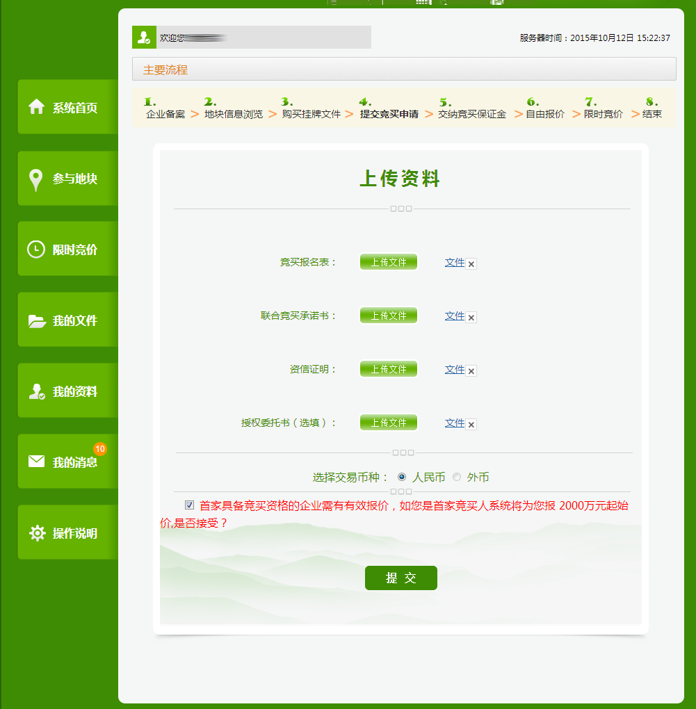 (3)当选择独立竞买时上传对应竞买申请资料。