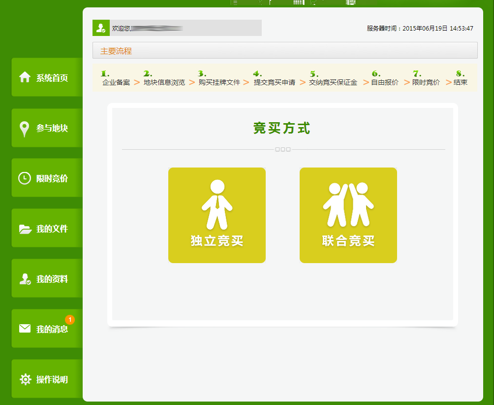 (2)选择竞买方式:独立竞买或者联合竞买。